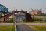 But people watching is interesting. Lots of visitors wander the streets. Chattanooga attracts people from all over. Plus, it’s summer time and the ever-blowing breeze from the river attracts people to the waterfront all on its own. I am not the only one watching. Cameras lace the park areas, observing secluded corners from lamp posts. I always wonder who is watching me as I walk by and what they think I’m up to. Security seems to be a primary concern. Cops patrol on bicycles, Segways, foot, and in cars. Between the cameras and the police presence, I find myself wondering if I’m in danger. Funny thing how security can make you feel insecure. Perhaps the anxieties that motivated people to hang cameras and hire extra cops taps into my own anxieties?