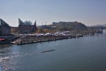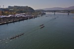 The third thing that catches our attention (oh, all right, so we could see this from our apartment before we left) is the number of tents lining the riverfront by the aquarium. There are market-style tents set up practically on top of each other. They line the street and spread out onto the grass between the road and the river. The road is closed and rowers walk in large groups, the teenagers oblivious to other pedestrians and not bothering to move out of the way when they occupy the entire sidewalk.