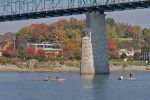 After a morning of hang gliding, we return to Chattanooga in time to check out the Head of the Hootch scene. The first thing about the Head of the Hootch is the sheer number of boats on the water. In spite of the fact that the river is closed to both recreational and commercial traffic for the regatta, and the fact that these boats are as sleek and trim as it gets, the river looks like it could not possibly have room for one more boat on it. As we walk over the Market St bridge to the aquarium, we have to stop and stare several times and gawk while we count the number of boats in a small space.