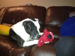 When we get home, he picks up the red dog and carries it in from the car, trotting along with his head held high like he’s won some sort of award. The joy I experience watching him is well worth the extra $8. When he gets to the living room, he plops his new toy in the middle of the floor and then pulls his stuffed squirrel out of the crate, laying them out on the floor side-by-side. It’s hard to know what goes through a dog’s mind sometimes, but I have to wonder if he really just wanted squirrel to have a friend.
