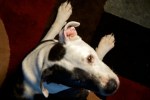 After doing some photo editing, I discover I’ve left the diffused light on. It must be generating heat because Tisen decides to lay on the floor under the light. I can’t resist moving in and shooting him from above just like the logo. Tisen really wasn’t meant to be shot from above, however.