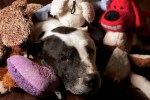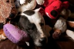 The down side is that he looks tense. He watches me and the camera for any sign that he can get up. The pile of toys look like they are leering at him, reminding me of something out of a horror film. I take pity on my patient model and tell him he can get up. He immediately takes one of the offending squeaky toys, Red Dog, by the . . . body? . . . and gives him a shake for all he’s worth. Red Dog won’t be leering at Tisen again any time soon.