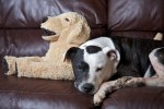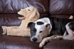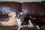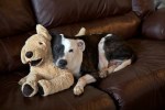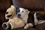 Since Tisen was at puppy daycare when we opened the package, we set Big Dog up on the couch with Lion. When Tisen came home, he ran to the couch, grabbed Big Dog and threw him on the floor, snagging Lion in the process. I guess he thought Big Dog had no business playing with Lion.