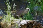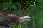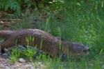Next, I headed outside hoping for better light to shoot in. I did get more light, but it wasn’t exactly better light considering the time of day. It was enough that I was able to shoot at 1/160th of a second, though. That allowed me to stop at least some motion. My favorite pictures of the otter are the two that show him shaking off. The first one is the start of the shake with only his head in motion. The second one is slightly later. The shake has propagated down to his neck. If I would have taken a bunch of shots, you could have seen how the shake moves from the head all the way down the length of the otter’s body. It’s pretty amusing to watch.