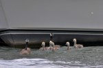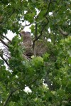 Back on the duck, we get the best view possible through fully leafed-out trees of a heron rookery. There is also an Osprey on its nest on a platform at the end of the island. As we come around the far side of the island, a group of double-crested cormorants perch in the trees.