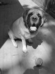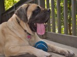 Katie was more of a lab trapped in an over-sized body with droopy jowls. She wanted to play ball all the time. She wanted your undivided attention all the time. She was as hyper as hyper can get in a mastiff. Unfortunately, her body betrayed her personality (or maybe it was the other way around) and her knees and elbows could not handle her desire to chase, spin, and retrieve her ball. She spent a depressing amount of time restricted from playing at all.