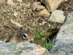 We spent the better part of the day climbing in elevation. By the time we got into the hills, we were starving. At the same time, the temperature was dropping rapidly and a cold wind kicked up. We found a rocky outcropping to shelter us from the wind and quickly learned that not only big, scary predators can be a pest if they’ve been fed. At least today we had only to outsmart the chipmunks.