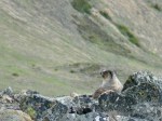 We did manage to complete our lunch without any injuries, although we did lose a crumb or two. As we walked on, we passed a slumbering yellow bellied marmot soaking up what little was left of the sun. in fact, sunshine came to an abrupt and frightening end when dark clouds rolled in and snow started falling fast. Unprepared to spend the night in a snow drift, we moved out quickly, taking the chipmunks’ last hope for a grand feast with us.