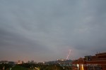The lightning kept flashing within the clouds, refusing to show itself. Then, suddenly, it flared straight at the ground. Lucky for me, the shutter was still open. My first lightning bolt! Then I caught another a few minutes later.
