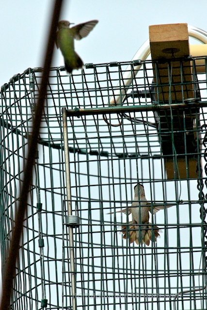 Young Male squawks at another hummer approaching the feeder Published September 9, 2012 at 427 × 640 in Hummingbird Band ← Previous Next →
