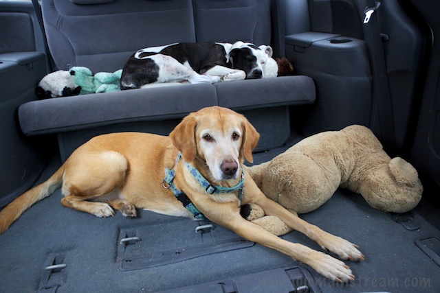 Dog Limo Published December 26, 2012 at 640 × 427 in Stone Door Christmas Next → Tisen uses Twiggy’s new toy as a pillow while Twiggy snuggles with Tisen’s Big Dog