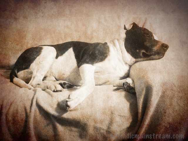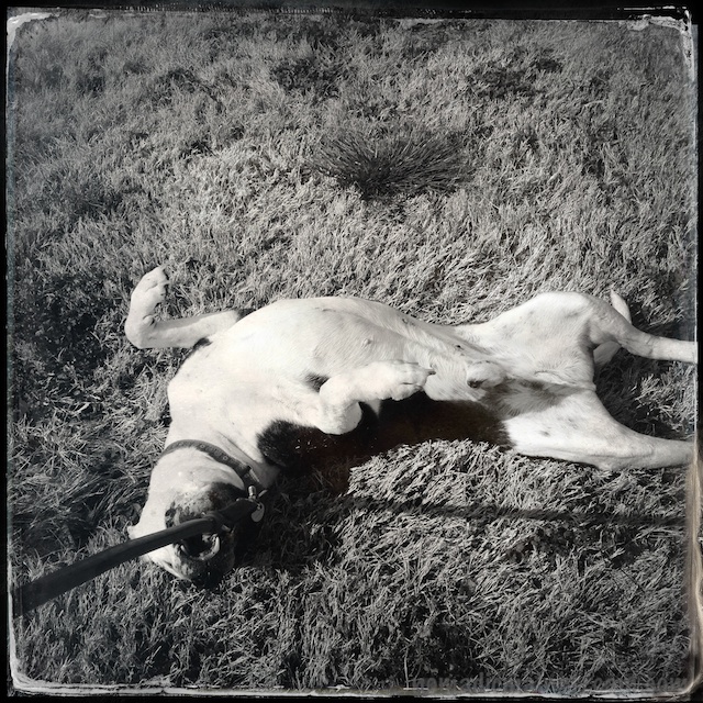 Interestingly, he rarely pulls on the lead. When we’re in motion, we walk together like he’s been expertly trained. The lead hangs so loose, I have to loop it to keep it from dragging and tripping one of us. He walks at my side content until the next great scent piques his interest.
