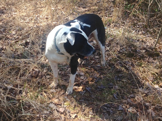 When we went for our little hikes in the Prentice Cooper State Forest this past weekend, we let Tisen off his leash when we were on trails where we were unlikely to run into anyone and far from ATVs. Because Tisen is the kind of dog that wants to have his people in sight all the time, we don’t have to worry about him running off (unlike an Akita we once fostered who seemed to think he needed to run 10 miles a day and that being let of the leash was an invitation to go do so).