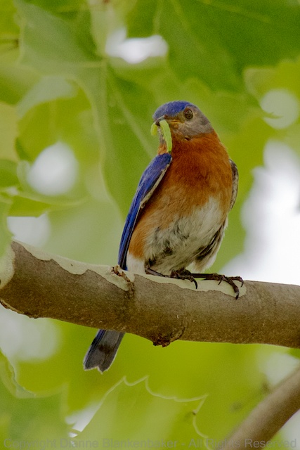 AU0A3496 Published May 11, 2014 at 427 × 640 in Showing Up ← Previous Next → Bluebird with a juicy looking worm on his way to his nest full of hungry babies