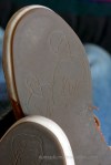 Pat sat across from me with his feet up on a foot rest. I noticed for the first time that his shoes, which he has had for at least a couple of years, have outlines of the shoemakers on the soles. I couldn’t resist trying to shoot the soles of his shoes.