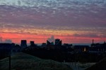 I return indoors to put a warm jacket on and pick up my camera and tripod, which I take out with me. This is problem number 4: I didn’t account for any setup time in my fantasy morning. Everything was just in place. And, by the way, problem 5 is rather obvious in that the sun doesn’t rise until after 7:00AM this time of year. I’m still a good hour away from first light. I set up my tripod and camera anyway. There is an interesting cloud hanging over the downtown skyline across the river and the smoke stacks on the various buildings have steam pouring out of them that appear to be creating the cloud. I watch the cloud and take some pictures as a substitute for the sunrise.