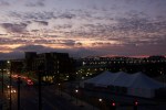 When I get out of the shower, the sky is turning red. I wrap up in my big, thick robe and carry the tripod and camera back onto the balcony. Looks like I will be shooting the sunrise after all. But, realistically, I don’t have time for this. The sunrise is so dramatic, I can’t tear myself away. I keep watching until the unbelievably bright red starts to fade into a more normal, muted tone. Then, I make a mad dash to finish getting ready for a walk.