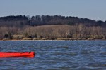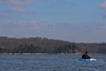 We paddle our way across the main channel and then head along the shore of the refuge, trying not to get close enough to scare the birds.  A large white bird is standing on the shore ahead of us.  It turns out it’s a White Pelican, not a typical bird for the area.  We were hoping for Whooping Cranes, which migrate through Hiwassee every winter, but no such luck.  The pelican decides to take off as we approach, but manages to fly at an angle so that he has his back to us the entire time.  I’m frustrated by my shots.