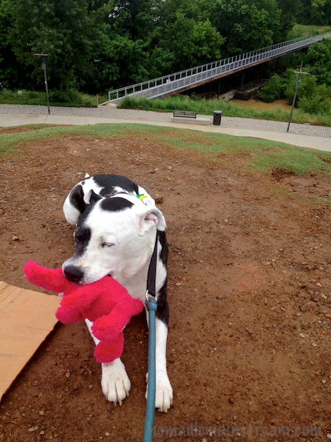 I took Tisen for a walk before I had to leave.  We made it about ¼ of the way through the park when the first clap of thunder sounded.  It wasn’t even a clap; it was more of a rumble.  It was enough for Tisen–he did an about-face and started pulling on the leash to head back in.  Because we lost Tiger during our lunchtime walk, I wanted to continue the walk and look for him.  But Tisen wasn’t missing Tiger so much.  I got him to turn around and take about 3 more steps, but when the next rumble of thunder came along, he was done.  We ended up jogging back up the path from whence we came.