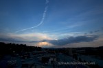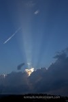 I grabbed my camera, tripod, an extra lens, and headed up to the roof. I found a neighbor up there, already enjoying the sky. She had her back to the sun rays coming through the clouds, enjoying the puffy clouds–although they were somewhat less puffy now. Like me, she really enjoys unwinding on the roof. Unlike me, she didn’t bring a camera.