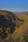 We make it to the overlook without injuring anyone and I set up my gear. It’s an amazing view from here. I had no idea that Northern Georgia has such incredible terrain. The canyon is deep and rocky, but sill mostly tree covered. The fall colors are far brighter than I expected to see in Georgia as well. Unfortunately, the setting sun creates deep shadows that contrast sharply with the brightly lit parts of the canyon and I struggle to capture just how amazing this canyon looks with my camera. After doing my best, we return to the car and, once again, the same boy nearly knocks his forehead into the end of the tripod. I suggest to Pat we need one of those orange flags used when driving with something hanging out of the back of the car. He suggests that the boy just needs to start paying attention to where he’s going.