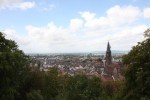In contrast to yesterday morning, I wake up feeling like whatever bug Pat was fighting has been evicted only to find it’s way over to me. I get up groggily at 6AM, but end up returning to bed until 9AM. When at last I wake up, Pat is already out of bed. We get ourselves ready and head to breakfast, debating what today’s agenda should be. Pat suggests we go hiking again. I suggest we hike up the mountain this time and take the cable car down, as my knees will not take another day of downhill. Pat does not want to work that hard, so I suggest we walk over to Shlossberg and walk up to the tower, which is supposed to be a fantastic view of Freiburg. I’m not sure why I wasn’t tipped off to the fact that if we walk up to a scenic overlook, we will also have to walk down, but I cheerfully propose this alternative, thinking it will give our knees a day to recover.