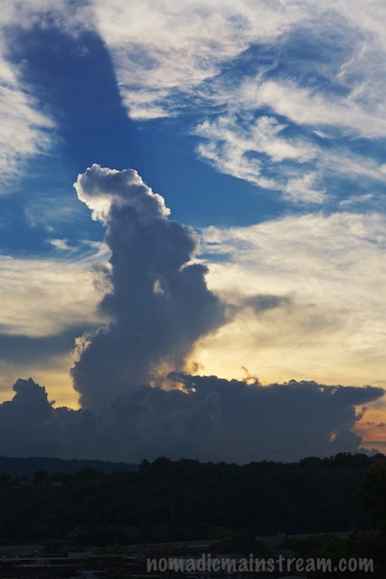 It rose a second time–or at least it looked that way. It passed through a stretch of clouds, appearing to rise all over again, when it crossed over the top of the cloud bank.
