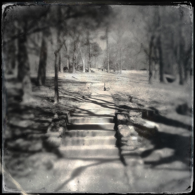 In this shot of the steps up the hill, the steps in the foreground disappeared in the blur created by Hipstamatic