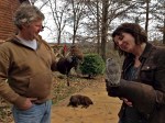 Next, we get to meet Casey, the Black Vulture. Casey seems to think she is a dog. She circles around Dale, who tickles Casey on the back and Casey responds with what appears to be a happy Vulture sound, but comes out a lot like a hiss. Casey gallops along on the ground, preferring to walk even though she is perfectly capable of flying. Dale tells us that she sometimes walks Casey in the woods–she really does think she’s a dog!