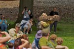 The performance is in a nice amphitheater large enough to accommodate probably 100 people.  It’s small enough to create an intimate setting.  It also makes it possible for Dale and John to walk through the entire audience with the birds, giving people an up-close view.  And, if walking around with the birds isn’t exciting enough, they fly a barn owl, Theo, a red-tail hawk, Cody, and a black vulture, Cayce, right over people’s heads.