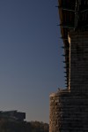 As we get closer and on the front-lit side of the bird, it appears to be a Red-tailed Hawk, but it doesn’t have a red tail.  Probably a young one, but I will double check when I get home.  Now that I am less worried about getting a shot good enough to ID the hawk, I go back to shooting landscape shots.  The hawk must like being the focus of my attention, because it flies up onto the Walnut St Bridge and perches in the sunlight for me.